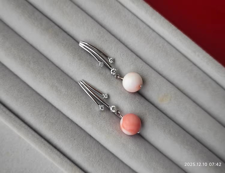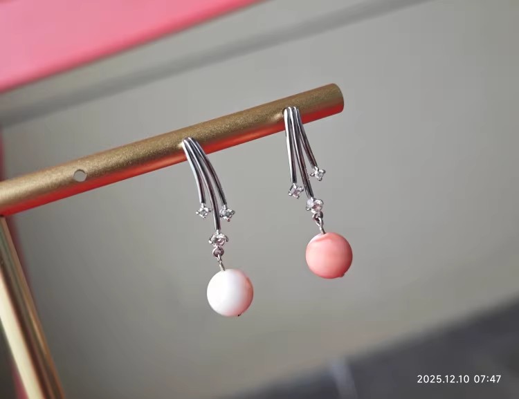 18K金镶钻天然深海momo宝石耳坠,时尚灵动,佩戴效果好。